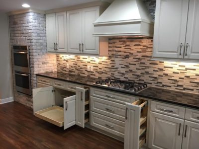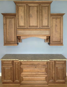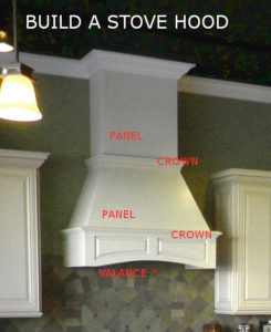 Just looking at the images above, you can see how we used different standard RTA cabinet parts to “build” a custom hood. A wall cabinet with a valance makes a simple hood.