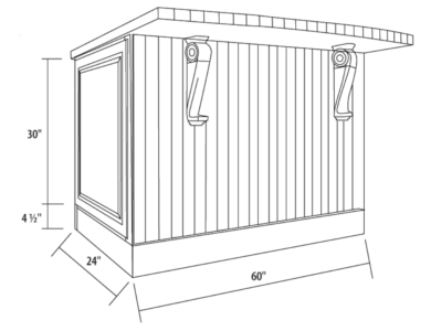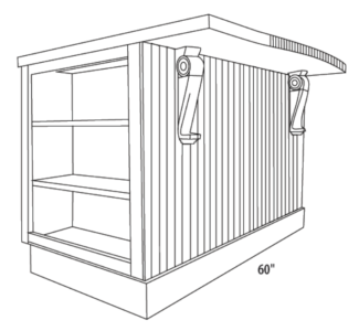 Create any size or shape island by combining cabinets of different sizes. Place a sink in your island, microwave or stove. Use the island for food prep or add a 12″ over hang on one side for seating.