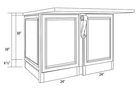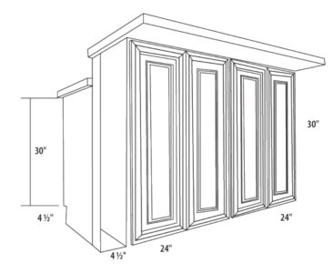 Use a wall cabinet 24″ x 30″ on the side of a base cabinet.