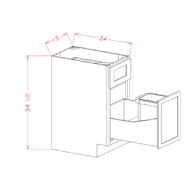 Base with Single Trashcan Pullout – 15″W x 34-1/2″H x 24″D -1D-1DR-1TC