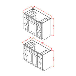 UPTON SHAKER-Vanity Double Drawer Base Cabinet – 42″W X 21″D X 34-1/2″H