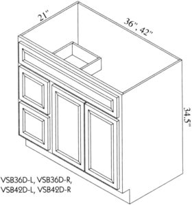 Vanity 42″Wx21″Dx34-1/2″H-2D- 3 left DRA