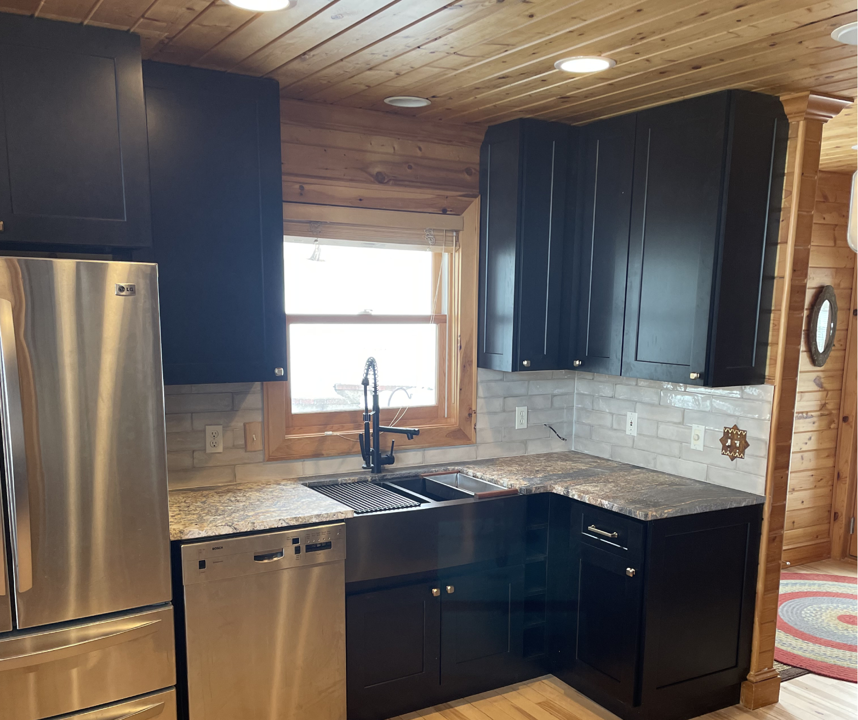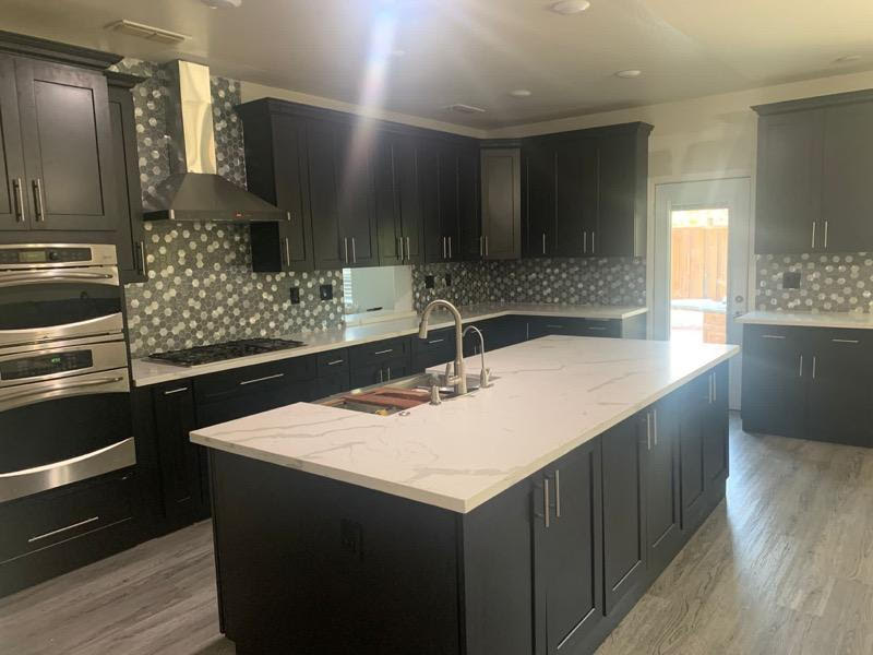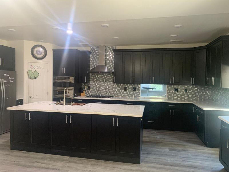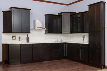 - Very popular, clean and contemporary shaker door cabinets with black stain!