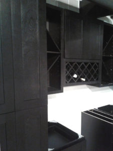 Shaker door in a beautiful Black Stained finish ready to assemble in stock, quick ship Kitchen Cabinets!