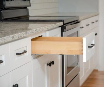 - All wood dovetail drawer box with full extension soft close ball bearing drawer glides.
