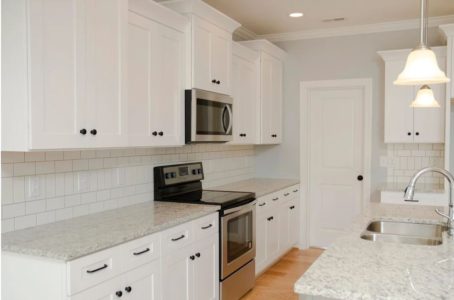 Lancaster White shaker kitchen and vanity cabinets, in stock and ready to ship.